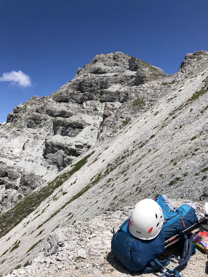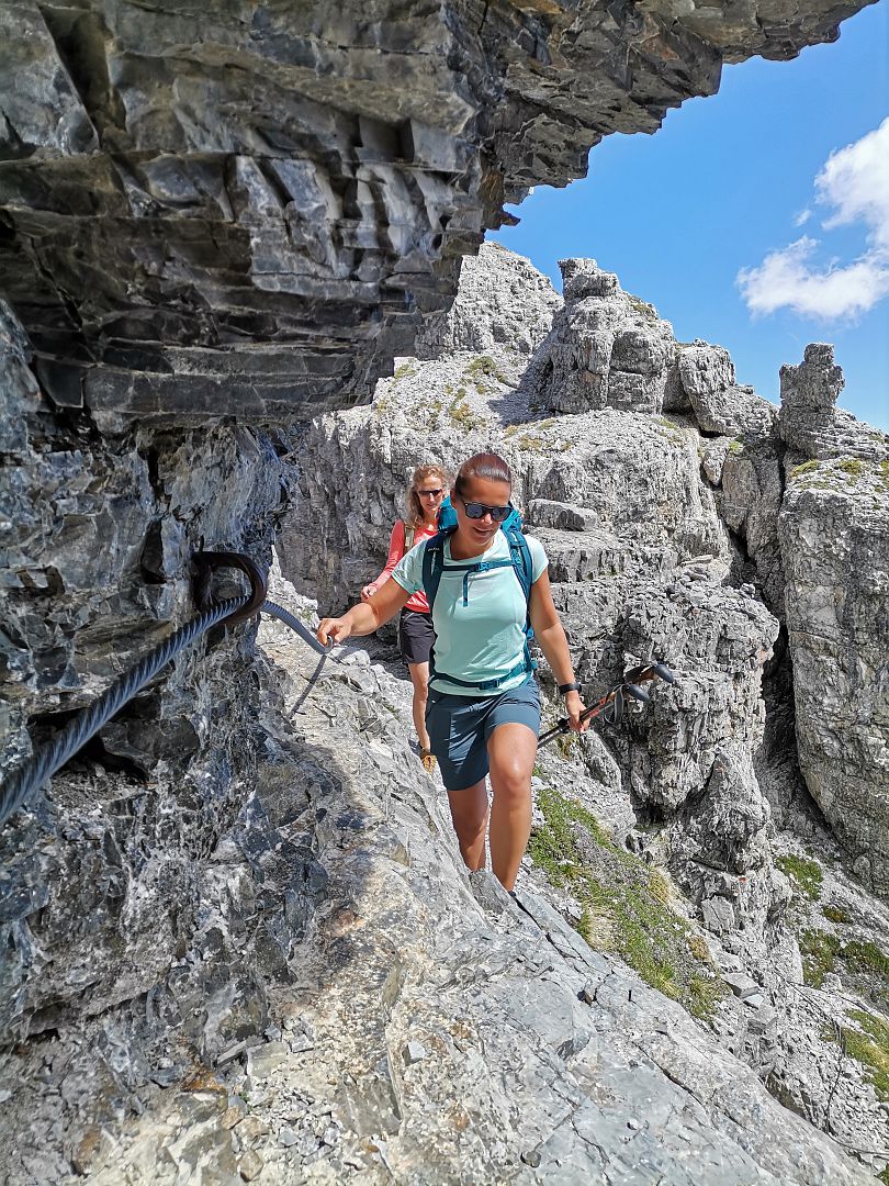 „Tolle Aussicht! Achtung: Alpine Erfahrung, Schwindelfreiheit, Trittsicherheit sind notwendig. EinKlettersteigset und Helm ist dringend zu empfehlen. Nicht für Anfänger oder Unerfahrene geeignet.“