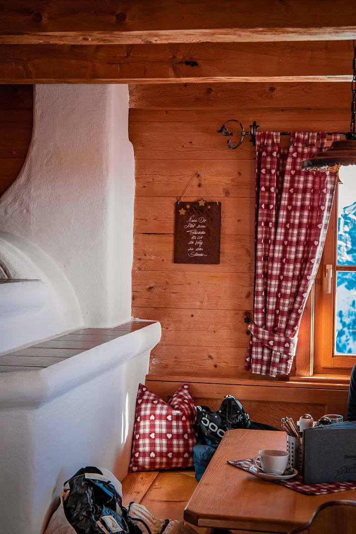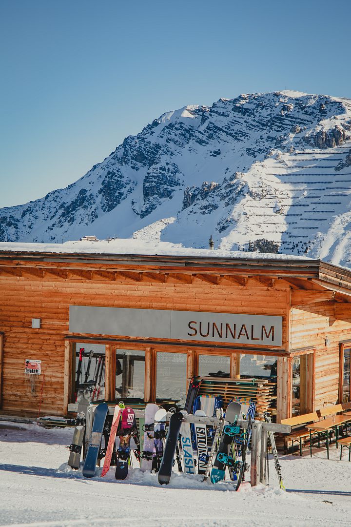 Die Sunnalm liegt mitten auf der Piste neben dem Karleitenlift und überzeugt mit ihrem rustikalen Stil und der großen Sonnenterrasse. Von hier aus habt ihr den besten Blick auf den Golden Roofpark.