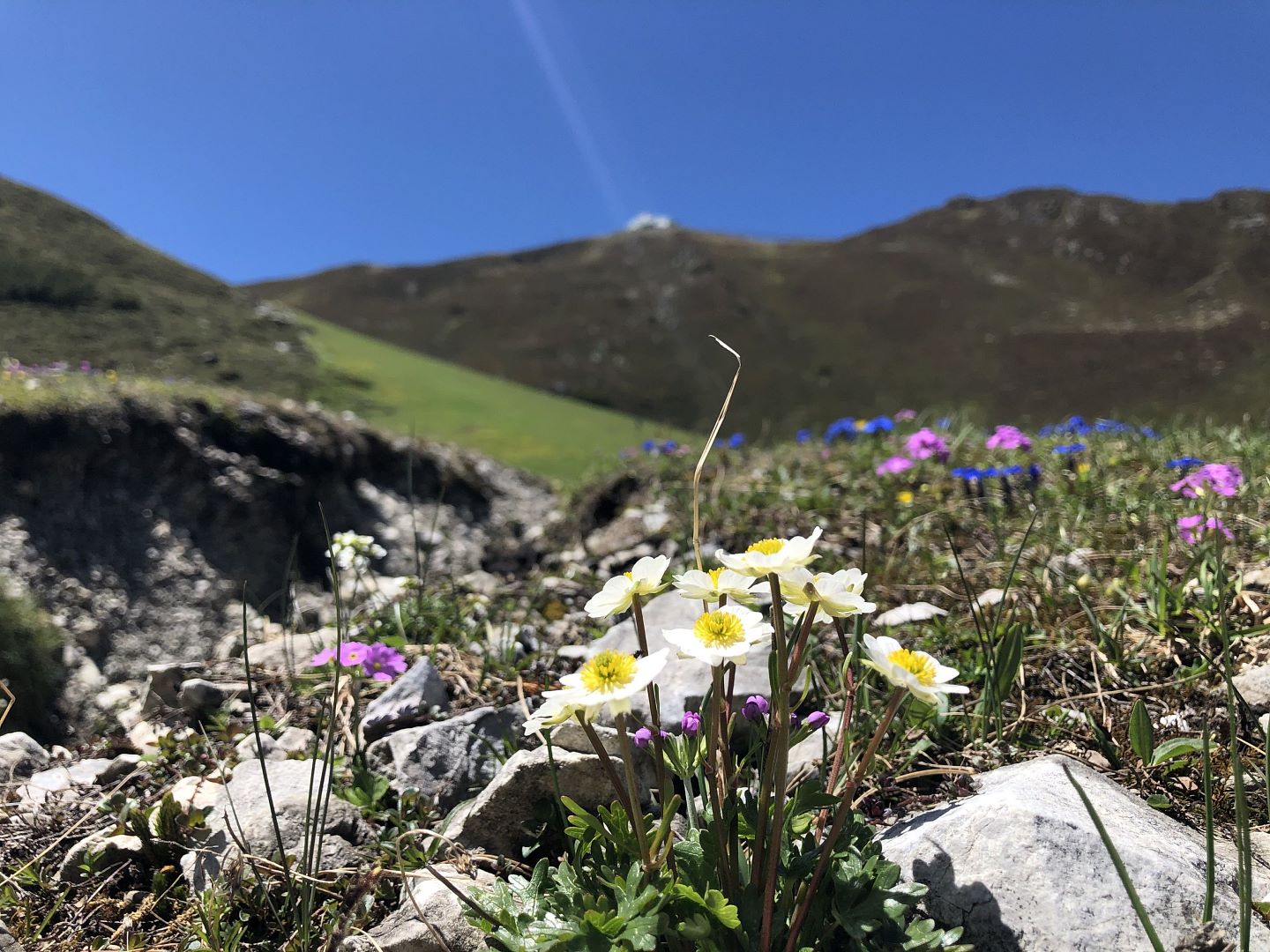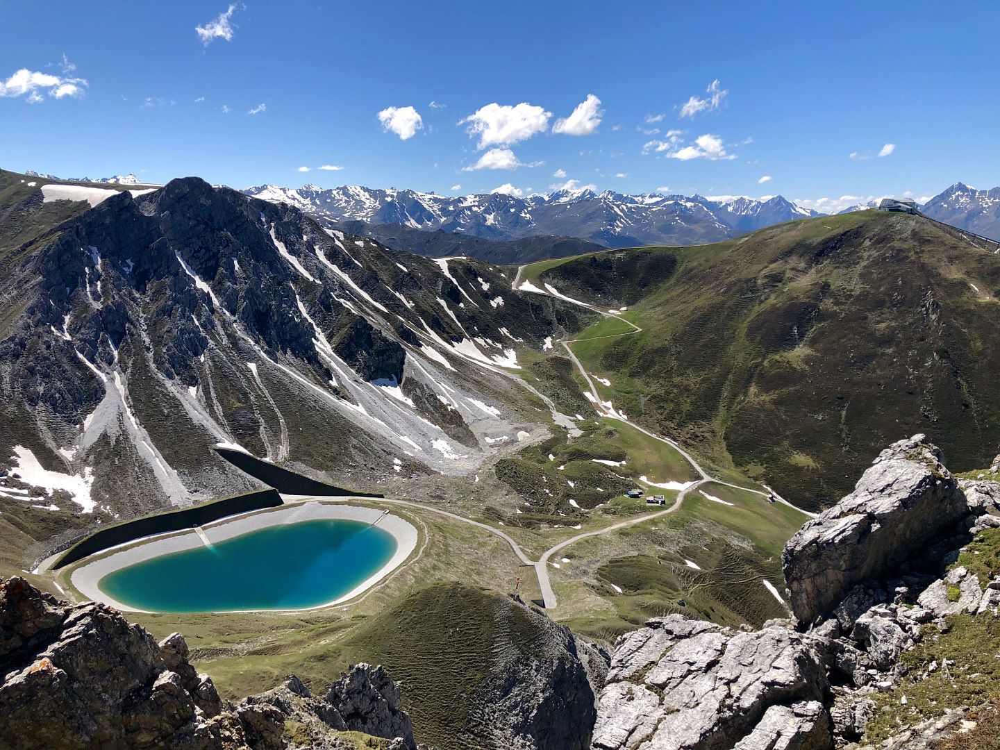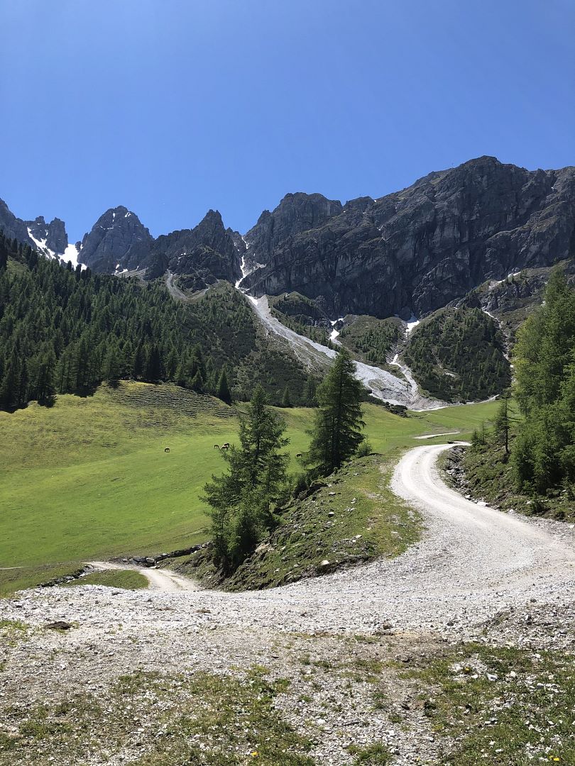 Vom Gipfel des Hoadl 2.340 m führt eine breite Schotterstraße hinab bis zum Dohlennest auf ca. 2.100 m. Etwas oberhalb vom Dohlennest befindet sich der Herzlteich.