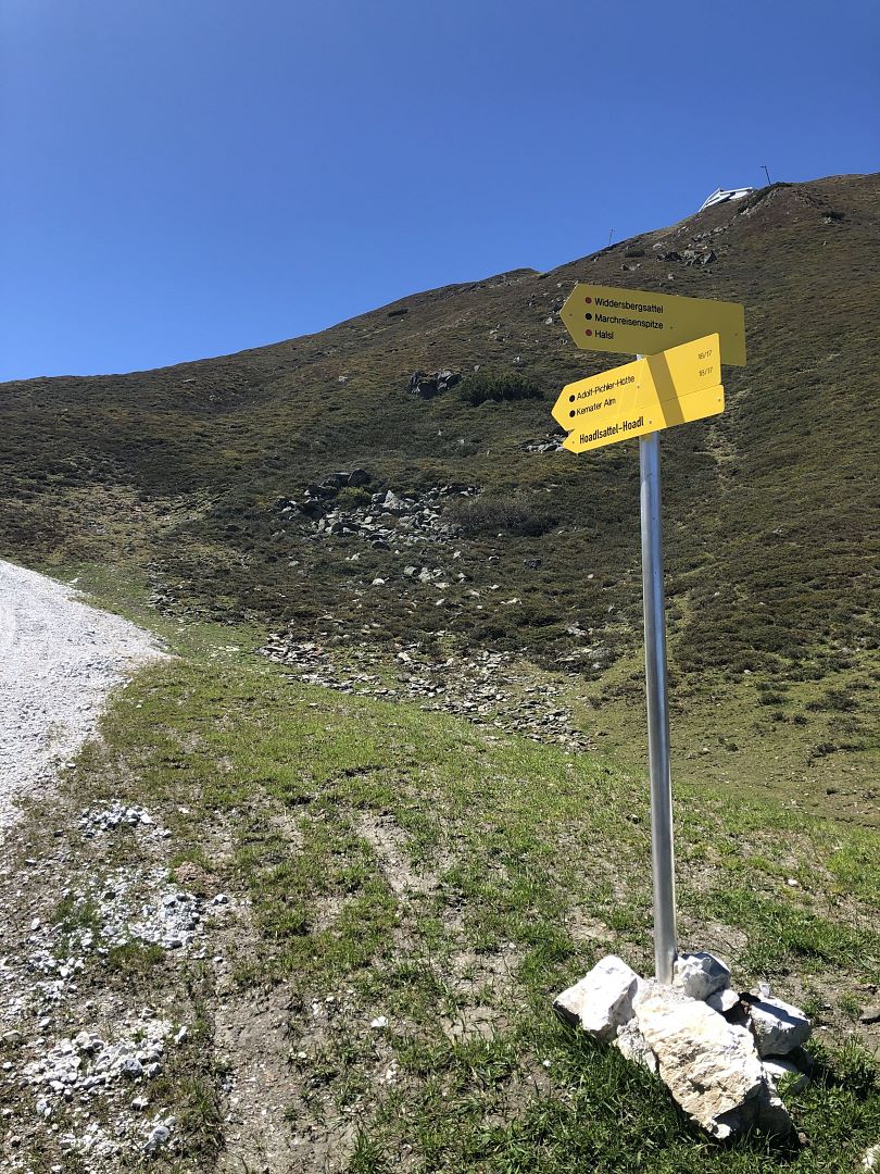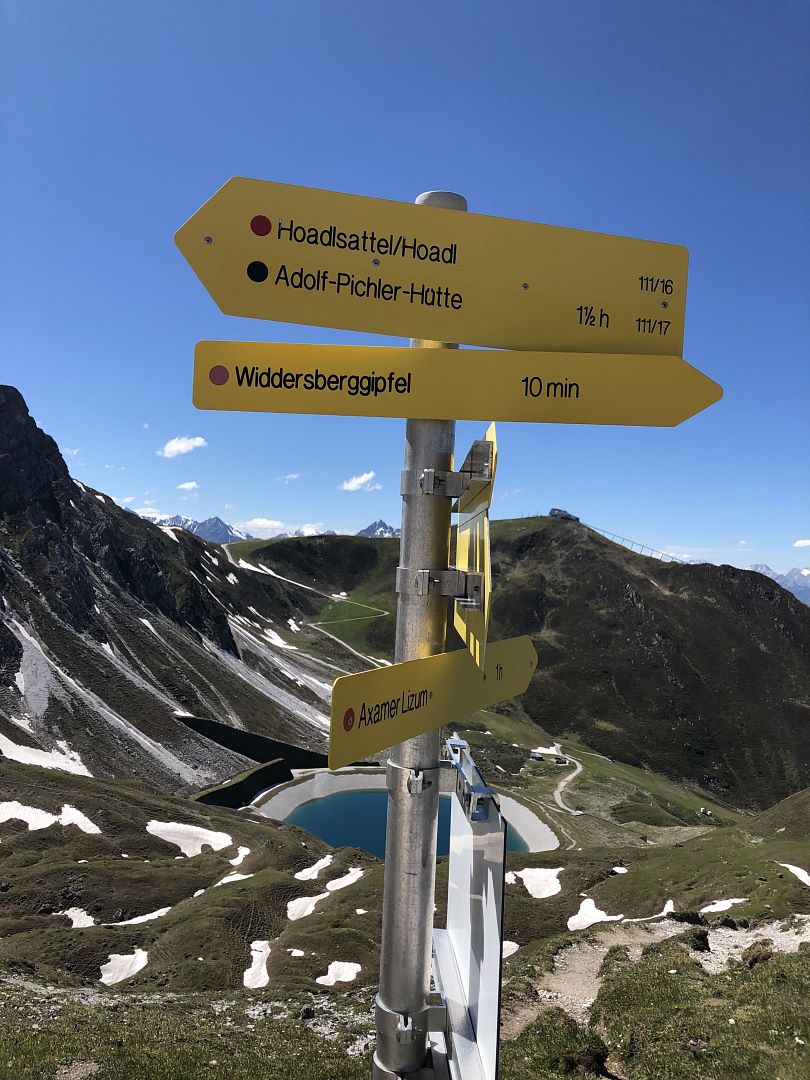 Mit der neuen Hoadlbahn zum Sonnenplateau Hoadl auf 2.340 m, dann nach links der Damenabfahrt abwärts folgend bis zum Hoadlsattel, dort dem Steig nach links folgen (siehe Beschilderung) und zum Hochtennboden aufsteigen ca. 110 Höhenmeter. Danach weiter dem Hochtennbodensteig abwärts folgen - mit tollem Blick auf den Herzlteich - und wieder ein kleines Stück aufwärts bis zum Widdersbergsattel (2.262 m). Bis zum Widdersberggipfel (2.327 m) sind es noch 10 min.