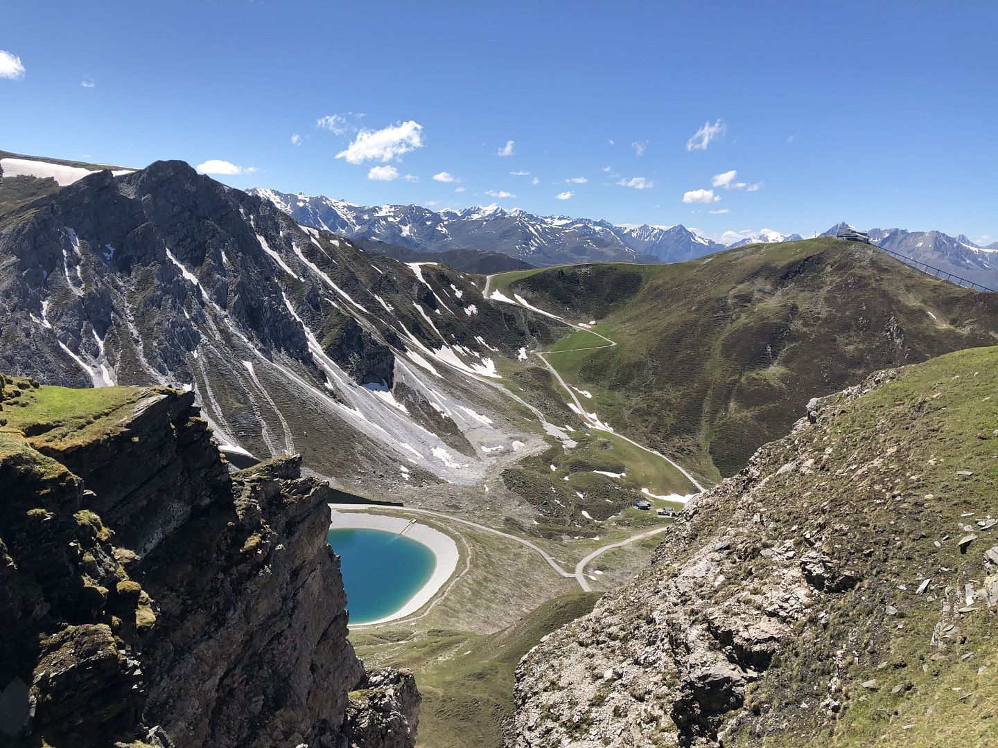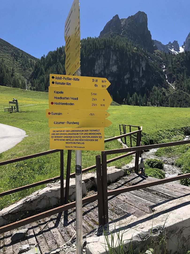 Nach einer Pause am Gipfel kann man entweder den selben Weg zurückgehen oder hinunter zum Herzlteich wandern und über den neuen Herzlteichweg bis zur Mittelstation der neuen Hoadlbahn laufen. Von dort geht es gemütlich mit der Gondel zurück ins Tal.