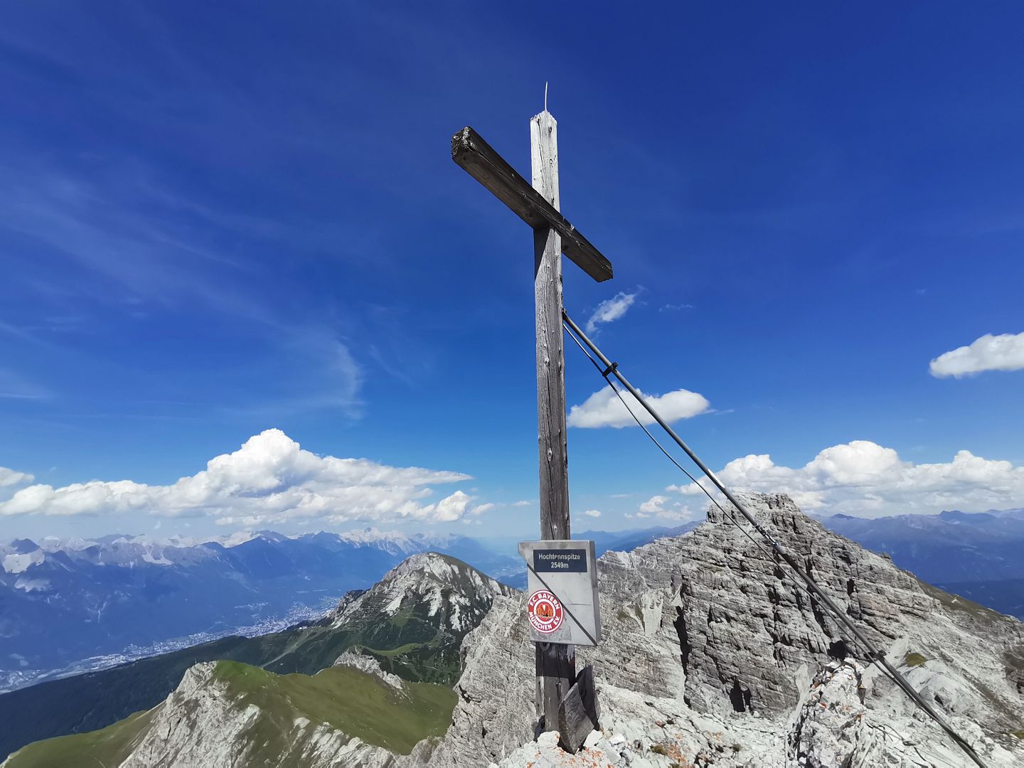 Mit der Hoadlbahn auf's Sonnenplateau Hoadl (2.340 m). Von dort nach links über den Schotterweg abwärts bis zum Hoadlsattel (2.264 m) - siehe Beschilderung. Hier den Steig links zum auf den Hochtennboden auf 2.365 m nehmen. Ab hier rechts halten und dem etwas schwer erkennbaren Steig über die weitläufige Wiesenfläche südwärts folgen. Nun umgeht man einige Felszacken und Türme und gelangt zu einer breiten, sehr steilen Schuttrinne bis zum Gipfel der Hochtennspitze auf 2.549 m.
