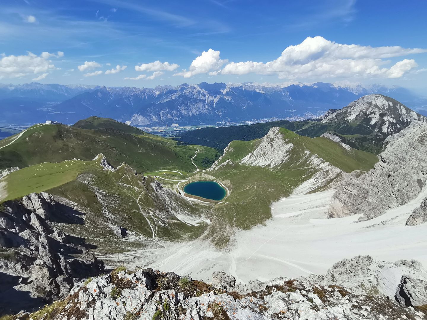 Wunderbarer Blick auf den Herzlteich, auf Innsbruck und ins Stubaital.